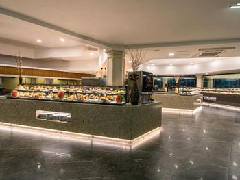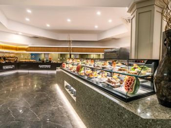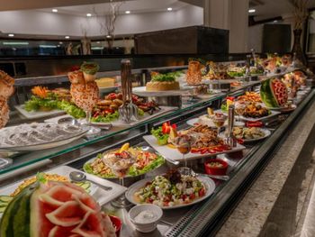 В главном ресторане для гостей сервируется шведский стол, где вам будет предложен хлеб, суп, горячие блюда, фрукты и десерты. Здесь установлена печь для выпекания пиццы, а также к услугам гостей салат-бар. В ресторанах с обслуживанием по меню вы сможете попробовать блюда из морепродуктов и блюда турецкой кухни.