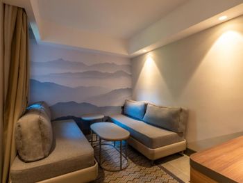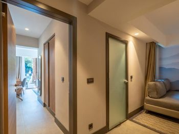 Очень красивое месторасположение, вокруг горы, чистый ухоженный сад, аккуратные домики в саду. Семейный люкс отличный, большой, двухкомнатный, с новым ремонтом и своей террасой.