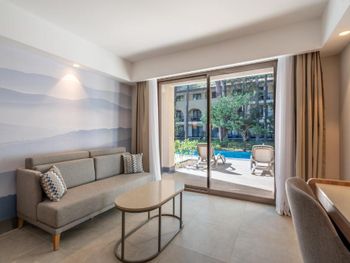 Коротко - отель с хорошей территорией и средним сервисом. Плюсы: относительно недалеко от аэропорта (на такси не больше часа), охраняемая территория с прямым выходом к морю (никаких посторонних людей на пляже), довольно просторные номера (нам особенно повезло получить двухкомнатный), множество сосен, дающих тень и запах. Первая встреча была просто анекдотичной. После быстрой регистрации и оплаты номера, забронированного через Booking, нас должен был проводить в номер носильщик. Решив разом обслужить нескольких гостей, он уложил на маленькую тележку сразу пять чемоданов и сумок. Через несколько метров они упали, носильщик снова уложил их в стопку и снова уронил. Опасаясь за сохранность своих вещей, я предпочел донести свои сумки сам. В номере обнаружились следы пребывания предыдущих постояльцев, зато не было инструкции к сейфу, за которой пришлось вернуться на ресепшен. Позже пришлось сходить туда еще раз, чтобы заменить батарейки в пульте от кондиционера. Сам кондиционер охлаждал хорошо, но поток воздуха был очень пыльным, поэтому старались лишний раз его не включать. Позже выяснилось, что не горят лампы освещения коридора. После жалобы на ресепшен две лампы поменяли, но третья так и осталась неисправной. Кроме того, однажды утром в номере на пару часов пропала вода. К счастью, лифт в здании не ломался, а лифт в главный ресторан за две недели был сломан только однажды. Уборка нас устраивала - всегда утром (чаевые оставлял), полотенца меняли, постельное белье время от времени перестилали. Как обычно, пыль под кроватями не убиралась, но песок с балкона уборщица подметала. Белье и полотенца были приемлемого качества, шампунем предпочитали пользоваться своим. Как уже сказано выше, главной удачей стал сам номер из двух небольших комнат с двумя санузлами. Номер 645, на третьем этаже с видом на “тихий” бассейн. Корпус - один из ближайших к ресторану и пляжу в относительно тихом месте. Основной шум по вечерам был от двух соседних отелей.