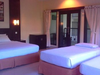 Бронировали (со 100% предоплатой) номер люкс. Однако заселили нас в номер другой категории (мы заезжали ночью): номер оказался темным, с невероятно слабым освещением (более того, лампочка одного из бра была перегоревшей), с пылью на столе и тумбах, в ванной комнате была по углам и стенам плесень, на полу разбитая плитка, в номере был один стул, шкафы стояли перпендикулярно друг другу (так, что у одного просто не открывалась дверца), вместо одеяла был плед, накрытый с двух сторон простынями, да еще и окно выходило на проезжую часть. В общем, первое впечатление об отеле - ужас! Сразу же пошли на ресепшн, показали распечатку брони с фотографиями; администратору было некуда деваться кроме как признать, что нас заселили не в тот номер. На следующий день нас переселили в номер, окна которого выходили на сад; сам номер был гораздо чище и приятней. Однако минусом это гостиницы является устройство ванных комнат (в которых и душевая кабина и одновременно ванна) - плесень. Также в ванной комнате частенько по ночам обнаруживались геконы! После сан.обработки на территории отеля (мы жили 2 недели, и при нас ее делали 2 раза), геконы пропадали, но через несколько дней снова появлялись). Не ведитесь на предложение, согласно которому отель предоставит вам в подарок аренду байка: у отеля всего один байк, и он очень старый, сами работники отеля не рекомендуют его брать в аренду (говорят, опасно на таком ездить). Также нам не понравилось, что в отель пускают местных девушек легкого поведения, которые сопровождают пожилых европейцев, проживающих в данном отеле. Эти девицы ведут себя развязно, купаются в бассейнах отеля, ходят на завтраки в этих своих нарядах... Гостям с детьми уж тем более такое некомфортно наблюдать.