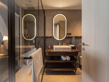 Будьте готовы к тому, что между туалетом-душем и основной комнатой стекло, которое со стороны ванны и туалета закрывается двумя ролл шторками, но при этом остаются значительные щели, то есть люди находящиеся в комнате могут спокойно увидеть как человек моется в душе или сидит на унитазе :). Так же запрещено курить на балконе, очень конечно странно, ведь можно поставить пепельницу и вопросов нет…..