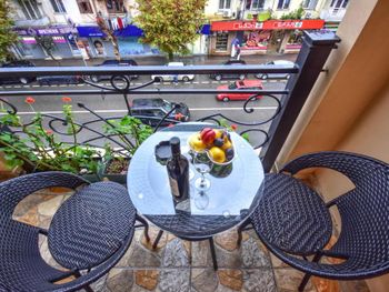Расположение отеля отличное, есть лифт. Тепло, кровати удобные. В номере есть чайник. Чая, кофе, сахара мало, воды питьевой нет. Приятный вид из окна и очень милый балкончик с плетёной мебелью