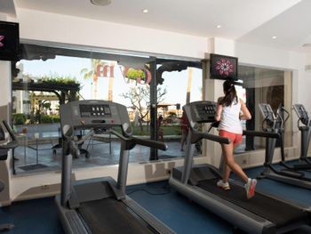 О территории самого отеля. Уборка проводится ежедневно, везде чисто и аккуратно, садовники – большие молодцы, гуляешь как по парку, деревья, газон, клумбы – ухоженные, клумбы аккуратно постриженные, фото тоже прилагаю. Бассейн, бары, дайвинг-центр, аптека, магазинчики, где можно купить всё необходимое (если вдруг не успели сделать это раньше) – словом, есть всё что нужно. Тренажерный зал находится на территории Club Resort, но им также можно пользоваться.