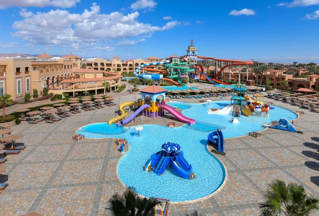 Там 3 отеля, между которыми можно свободно ходить. Аквапарак (который для детей), пляж, бассейна, номера, питание - всё вполне норм. Самое главное море - есть живой караловый риф (обязательно прочитайте про морских ежей перед поездкой). Спасибо Mahmoud за помощь на рецепшне.