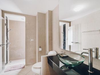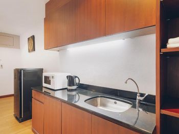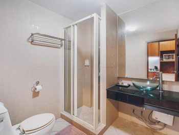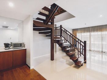 Удачное место расположения, Уборка каждый день, большой балкон-терраса, очень красивый натуральный паркет, в здании бар Frasiers где отличные не дорогие завтраки и вообще кухня, рядом фудмарт и станция автобусов, которые ездят из и в аэропорт Суванапум, в номере сейф на ключе