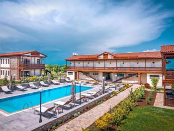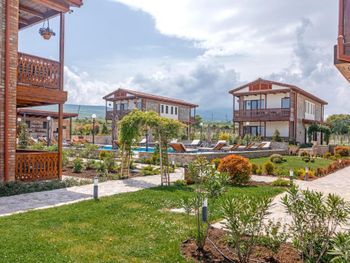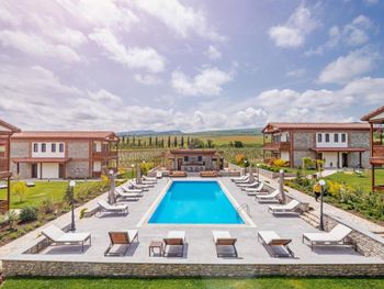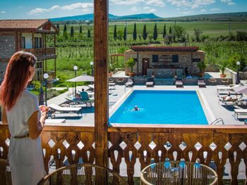 Красивая большая территория, с виноградниками прямо у отеля. Хороший ремонт в номерах и общих пространствах. Бассейн ухоженный и чистый, вокруг него лежаки. Охрана на въезде и парковке. Есть разные мастер классы, но мы их не посетили.
