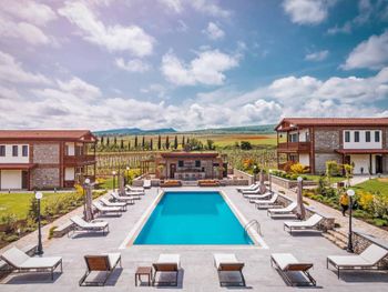 Новые гости этого отеля, обратите внимание! есть нюансы о которых мы не знали, иначе мы бы сюда не приехали. Единственное, что понравилось, это прекрасная идея построить винодельню в Кахетии и совсем пустая свободная автостоянка)) К сожалению, в отеле не профессиональный персонал и "очень странные" для Кахетии- винодельческого региона, правила, это понты? или замах на статусность? результат- пустой отель)) В общем, по итогу отдыха- если совсем негде переночевать, то вам сюда- тихо переночевали и тихо уехали, ибо ни есть, ни пить, ни дышать вам в здесь нельзя, здесь хозяйка- недовольная вашим приездом Нина и она будет решать, кому и что делать, можно ли вам продать мороженное, если вдруг вы пьёте на балконе или около бассейна вино другого завода, так и сказала: "ты, ты и ты мороженное не получите, кофе не получите, ничего не получите" правила отеля-это нормально? Вид из ресторана красивый, но эту красоту можно увидеть везде в Кахетии и в других отелях за меньшую стоимость. В день приезда ужинали в ресторане- не понравилось.Еда в ресторане посредственная, харчо пересоленый, мясо пересушенное, порции маленькие, цены завышены.Заказали вино Киси отеля, по сравнению с другими производителями- ни чего особенного, цена завышена в 3 раза, про понты не забываем). Завтрак скромный: яичница, колбаса, сосиски, сыр, попросили кашу- один день сделали, в другой день сказали: "каши нет" (уже даже не смешно), что проще овсянки может быть? В отеле мёртвая тишина, включали колонку, чтобы хоть как то поднять настроение. От дегустации, которую предлагает отель своим гостям платно мы отказались, зато получили удовольствие от дегустаций в других винодельнях бесплатно, купили домой несколько ящиков вина. Удовольствия от грузинского гостеприимства в этом отеле не получили-и это единое мнение 14 человек. Осадок остался после проживания, хотелось что то хорошее написать, на ум ничего не приходит.
