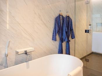 Впервые вижу отель 5 * не предоставляющий одноразовые тапочки), многоразовые пластиковые для бассейна не в счет. Главная проблема отеля уборка номера (всегда после 16.00). Каждый день, в течение недели, в номере не хватало то полотенец не комплект, то шампуня, то кондиционера, не докладывали сахар. Мытую посуду оставляли у раковины не убирая в шкафы. Персонал залазил в пакеты с нашими продуктами в холодильнике (один раз застали с поличным). Уборщица ходила босиком, потом встала на кресло поправить занавеску голыми ногами, ничего не постелив. В забронированном нами номере заявлена гидромассажная ванна, не правда она обычная(. Гладильных принадлежностей в номере не было, пришлось просить). И это обслуживание в категории Люкс. У бассейна ин-т с большими перебоями, переподключение каждые 10 мин. Проживание в этом отеле не оправдало ожиданий.