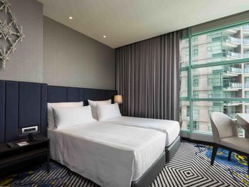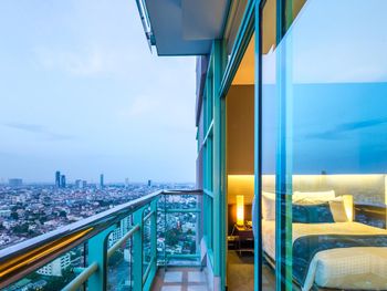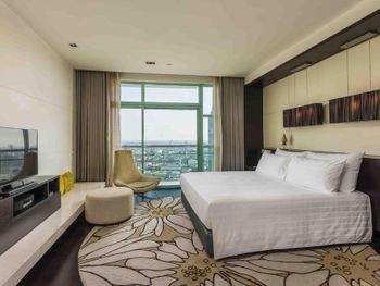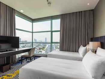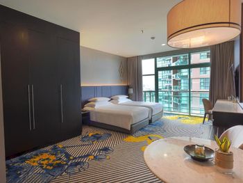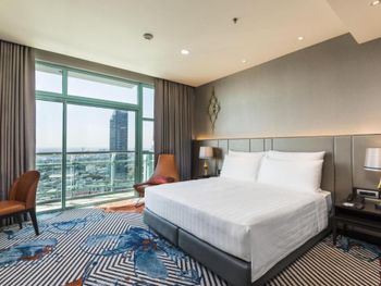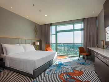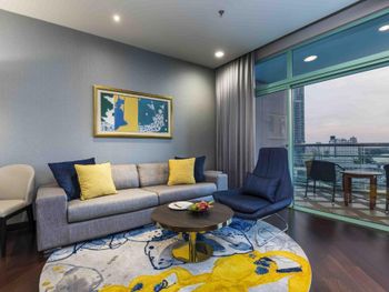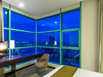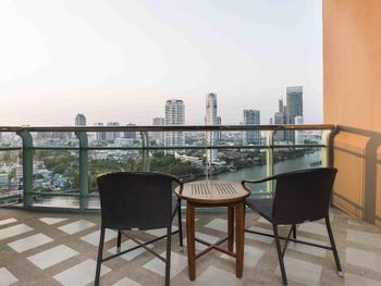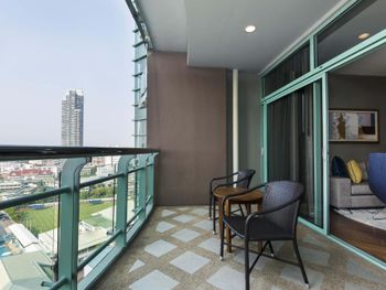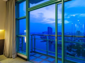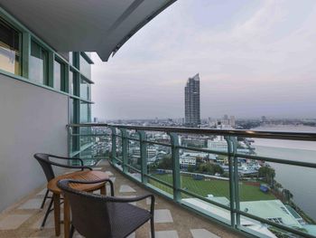 Проживали в отеле 4 дня в июле в номере Делюкс на 25 этаже с видом на город. И спустя 10 дней на обратном пути в Люксе с видом на реку. У номеров с видом на реку, просторный балкон с креслами и столиком.