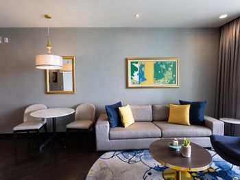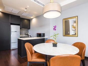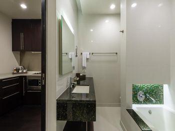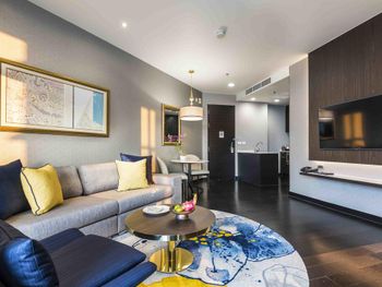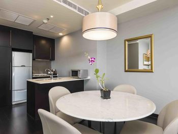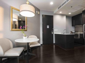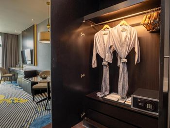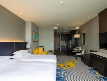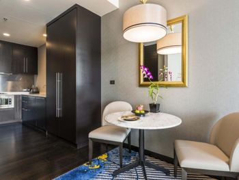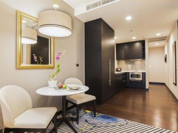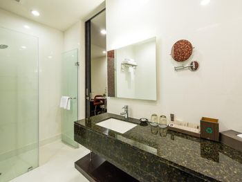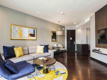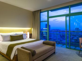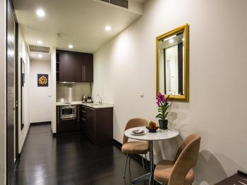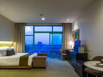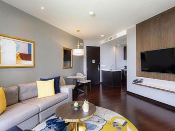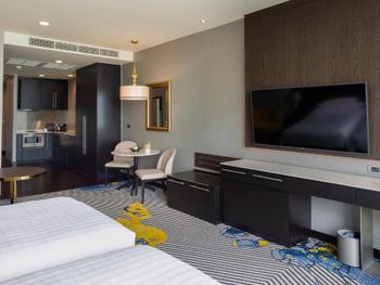 Просторные люксы располагают французскими окнами, собственными балконами, современной мебелью из темного дерева и телевизорами с плоским экраном. Среди удобств хорошо оборудованная мини-кухня и обеденная зона. В ванной комнате с душем предоставляются бесплатные туалетно-косметические принадлежности, тапочки и удобные купальные халаты.