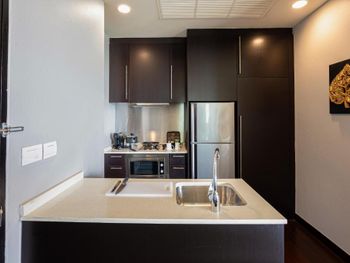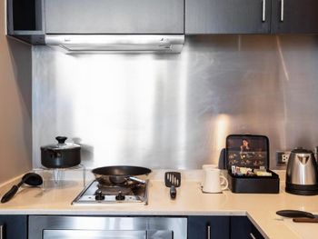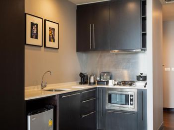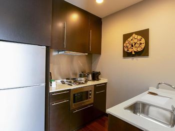 При заселении выяснилось, что в номере есть не всё, что указано в описании при бронировании. У нас не оказалось микроволновой печи, духовки, кухни.