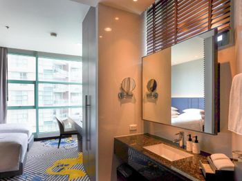 В номере отеля был очень не приятный запах (Сильный и не понятного происхождения) не понятно кухня это была или кондиционер. Балкон всю ночь был открыт, чтобы запах ее дошёл до спальни.