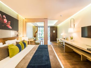 Понравилось абсолютно все. У нас был номер делюкс, они на первом этаже, действительно темновато в номере, так как зелень заслоняет свет. Номеру сейчас часть ремонтируется. Наш был , видно, что уже немного уставший, но это не мешало прекрасному отдыху. Думаю, отель в скоре отремонтирует все номера. Территория невероятно красивая , уютная и большая. За пределами отеля веселье , шум, а внутри отеля тихая гавань для спокойного отдыха. 2 шикарных бассейна, достаточно много лежаков. Персонал очень приветливый. На территории отеля также есть спортивный зал, по мне - мало тренажеров для ног, но мужчина нашел себе все необходимое. Так что, для поддержания тренировок инвентаря достаточно. Нам было очень комфортно прожить 10 ночей в данном отеле, я обязательно вернусь.