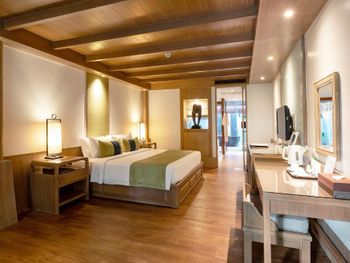 Уютные номера с современными удобствами и собственной террасой оформлены в тайском стиле и оснащены DVD-плеером, сейфом и холодильником.
