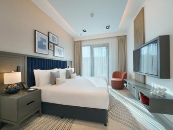 Во время путешествия специально останавливались в 5 отелях 5 звезд по 3-5 дней в разных локациях Дубая, данный отель отель оказался лучше всех. Просторные, дизайнерские апартаменты с современным и стильным внутренним наполнением (встроенная и мягкая мебель, бытовая техника, постельное белье, декор интерьера и экстерьера), идеальная чистота в номере, приветственные доп. опции на кухне, завтрак по меню выше всяких похвал, прекрасный бассейн на крыше, широкий пляж в пешей доступности. Остались только положительные эмоции, отдельный респект дизайнеру отеля: идеальное цветовое решение, прекрасно подобраны текстуры и фактуры интерьера и мебели, изысканное декорирование стен, внимание уделяется мелочам... форма персонала глубоко-серого цвета подчеркивает и дополняет общий стиль интерьера отеля. Прекрасный вид из номера через панорамные окна на бескрайнее небо и силуэт Отеля "Атлантис" радовал каждый день. Обязательно вернемся еще!!!
