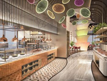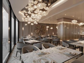 Гостям предлагается завтрак «шведский стол», полный английский/ирландский завтрак или американский завтрак. При Ciel Dubai Marina, Vignette Collection by IHG работает ресторан, где подают блюда французской кухни, блюда греческой кухни и блюда индийской кухни. Гости могут попросить приготовить вегетарианские, безлактозные и халяльные блюда.