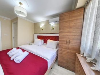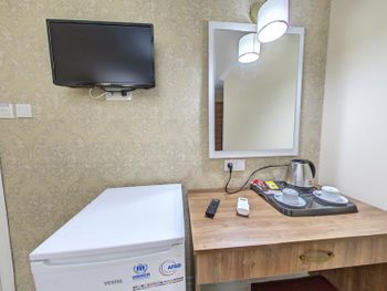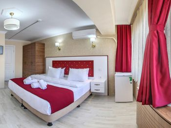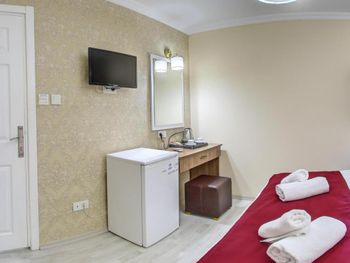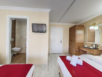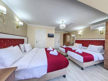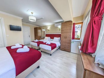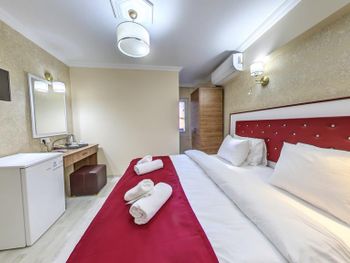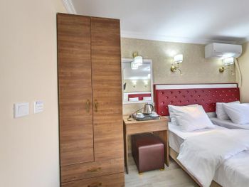 Забронировали номер площадью 20м на 4 суток, на самом деле это просто комнатушка с маленьким окном и темным освещением, фото слишком осветлили и вытянули, в живую выглядело всё печально, плюс стоял шкаф напротив стены, как туда одежду ложить и брать у меня до сих пор вопросы. Попросили поменять номер, нам предложили трёхместный с доплатой 5€ в сутки. Номер оказался лучше, но по метрам тоже не очень большой. По итогу: 4 вешалки на троих👍🏻, стаканов нет, но есть чайник, не проверяли работает ли, в ванной нет сушилки-батареи!!! и от чего потолок в ванной в плесени. Я в небольшом шоке как ванна и без батареи. В комнате нет мусорки, есть одна в туалете и очень маленькая. Номер не убирали от слова совсем, на третий день утром нашего прибывания попросили на ресепшене сделать уборку, но всё в номере осталось неизменным. При заезде была вода 3 бутылки, эти бутылки Вам на всё пребывание! В отеле плохая звукоизоляция. Стены тонкие, можно было слышать всё, что происходит в соседних номерах. Огромное спасибо Кадыру, мужчине на ресепшене, говорящему на русском, помогал чем мог! В день выезда мы оставили чемоданы на ресепшене, вылет был перенесён на ночь, в холле у ресепшена ни одна розетка не работает и нет света, сидели в полумраке и без зарядки. Очень надеюсь что владельцы отеля примут меры по устранению недостатков