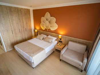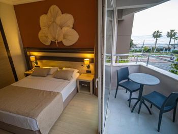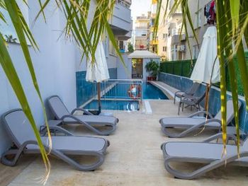 Отель-бомба. Идеальная локация. Пляж через дорогу. Лежаки, зонты, полотенца-от отеля. На пляже работает бар, предлагая разнообразные напитки, и кафе, где можно вкусно пообедать. Напротив входа в отель-обменник, через два дома"Мигрос". Номера удобные, с видом на море, убираются каждый день. Администрация отеля очень внимательная. Мы приехали на своей машине, а через 5 дней поняли, что сел аккумулятор. Работники отеля тут же отреагировали на нашу проблему и вызвали техническую бригаду. Особая благодарность администратору Юлии, которая говорит на многих языках и благодаря которой нас все понимали.
