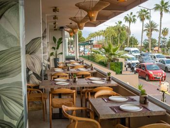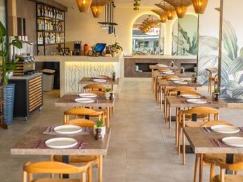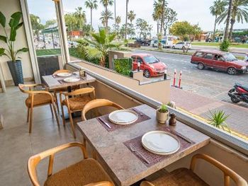 Как пишет в своих отзывах каждый первый - шум: от дороги (много громких мопедов и часто проезжают скорые и полиция с сиреной), а вечером громко включают музыку соседние бары. Помогают номера с видом на горы и закрытый балкон. Номер очень маленький - максимум на двоих. При этом на весь номер только один настенный светильник у зеркала - света не хватает очень сильно. В номере нет кружек и ложек - их с неохотой выдают в ресторане. Глупо расположен кондиционер - он дует прямо на человека на кровати. Сам кондиционер работает, но чувствуется, что его уже давно не заправляли и не обслуживали. В санузле был странный невыветриваемый запах специй. Мы не смогли открыть жалюзи вентиляции. Воду ставят только при заселении. Полотенец для пляжа в отеле нет. Отсутствует выбор еды в ресторане на нижнем этаже. Завтрак - это просто пожаренное основное блюдо с вечера, плюс овощи, варёная колбаса и сыр, джем в маленьких упаковочках, фруктов нет. Ужин - то же самое, но с одним мясным блюдом, которое каждый день разное, плюс невкусные фрукты (арбуз, дыня, яблоки, персики, груши, виноград) и один вид сладкой сдобы. Все без исключения напитки, кроме просто воды, за ужином платные. Подытоживая по еде: на завтраке есть нечего абсолютно, на ужине голодным не останетесь, но выбора нет никакого. Возникла напряженная ситуация при выезде - сотрудник на ресепшен не видел, что оплата была сделана ещё на этапе бронирования на booking.com, пришлось показывать чек, который он высылал менеджеру, а мы и такси ждали всё это время.