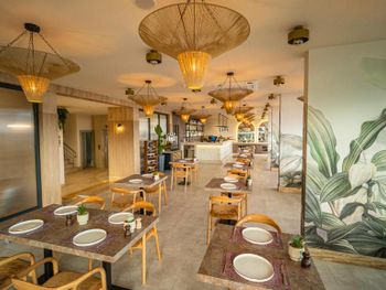 Ресепшн по русски не говорит. Сидит какой то мальчик, не знает ни русского, ни английского. Не показав даже номера, первым делом, стал требовать оплатить номер. Есть полупансион, 20 евро с человека. Это конечно дорого. Номер нам стоил 555 $ 10дней. Каждый день на ресепшн цена дорожала. В день отъезда (16.06.23) номер 2 местный стоил уже 135 $ сутки.