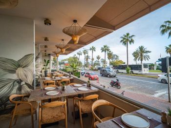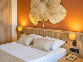 Очень шумная дорога перед отелем, даже окна до конца не спасают. Матрас хотелось бы более жесткий. Пляж выглядит не очень чистым. На пляже очень громкая навязчивая музыка, от которой некуда деться.