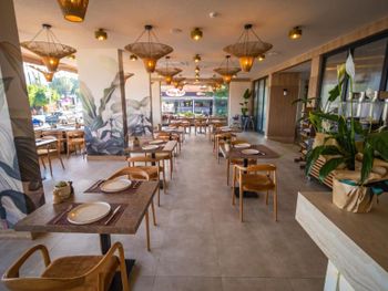 Расположение рядом с пляжем.Отличная еда.Повару огромное спасибо.Вода в неограниченном количестве.Недалеко от центра и магазинов. Свой пляж.Отличное обслуживание на пляже.