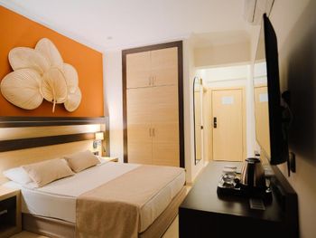 Если одним предложением: скромный бюджетный городской отель для непритязательных туристов, но с неплохим городским пляжем через дорогу. Стоимость чётко соответствует реалиям. Стойка регистрации работает круглосуточно. Вдоль перпендикулярной пляжу улице городская парковка, место найти можно. Отель легко найти, его расположение соответствует карте. Расположение в 15-20 минутах ходьбы от центральной крепости, напротив отеля через оживлённую городскую дорогу (есть пешеходный светофор) неплохой городской пляж. На пляже от отеля действует 50% скидка на лежаки (50 лир вместо 100 лир за лежак с зонтиком). Рядом с отелем большое количество всевозможных кафе и ресторанчиков, включая МакДональдс и БургерКинг, в 5 минутах ходьбы два больших супермаркета Мигрос. Рядом с отелем остановка городского автобуса №1. На такси от аэропорта Аланьи (Газипаша) даже с учётом плотного городского движения ехать меньше часа, стоит около 35-40 USD. Основной персонал приемлемо говорит на английском языке. Номера маленькие, но полностью соответствуют фотографиям. Что приятно удивило: хорошая шумоизоляция между номерами. Кровать мягкая, но удобная. Подушки тоже удобные. Ванная комната старенькая, но всё работало исправно, горячая и холодная вода были всегда, напор шикарный. В ванной: фен, мыло и гель/шампунь. Душевая кабинка маленькая. Уборка номера ежедневно.