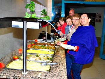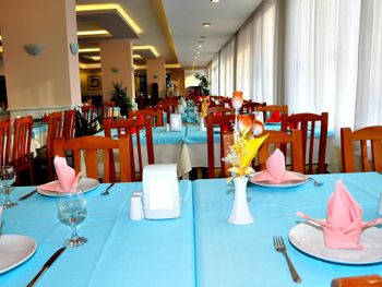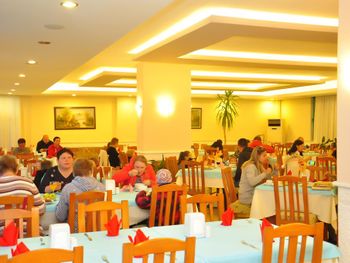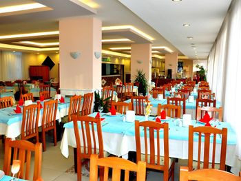 Гостям предлагается обслуживание по системе «все включено»: завтрак, обед и ужин. Блюда подаются в формате «шведский стол». В баре можно заказывать разнообразные алкогольные и безалкогольные напитки, как холодные так и горячие. В течение всего дня гостям предлагают сладкую выпечку.