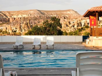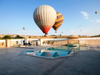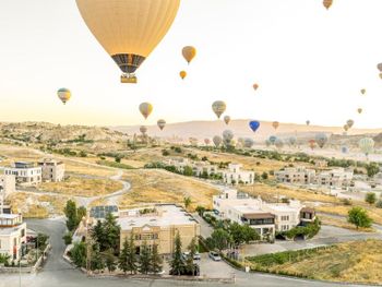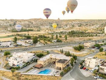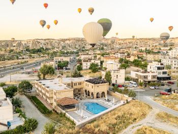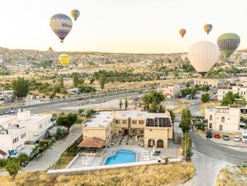 Отель расположен на окраине Гереме. Так как сама деревня очень маленькая, то с утра как на ладони воздушные шары - запускают их с площадок рядом с отелем, а вечером до ресторана приятно прогуляться минут 5. По жаре днем можно полежать возле бассейна. Уборка в номере каждый день