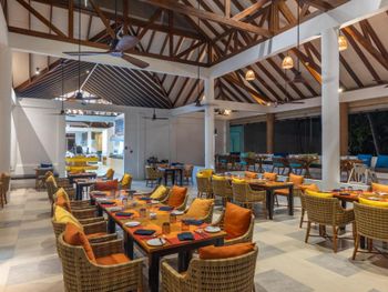 В ресторанах Koimala, Maakana и Rehendi сервируют «шведский стол» с разнообразными блюдами интернациональной кухни. В 2 барах на берегу океана гостям предложат коктейли и охлажденное пиво.