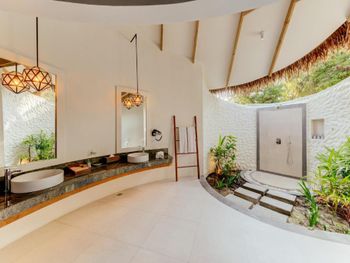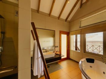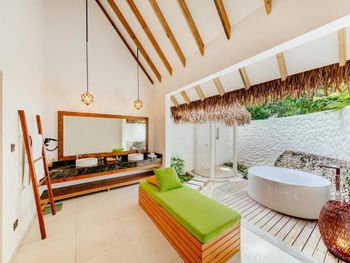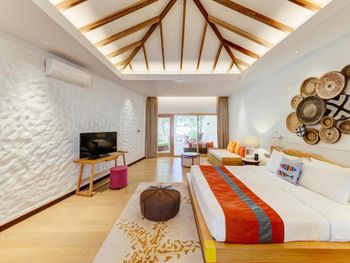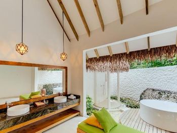 3. Для отеля уровня 5 звёзд в номере отсутствуют халаты и тапочки, забывают принести кофе и чай. 4. Отсутствуют крючки в ванной комнате для того чтобы банально повесить полотенца. Приходилось вешать их то на стул, то на перила, то на дверь. 5. Телевизор находился на 1 этаже напротив которого стояла не раскладываемая софа, вдвоём на ней можно было только сидеть. Возможности прилечь вдвоём она не предусматривала. 6. На втором этаже напротив кровати были сделаны выходы под ТВ, но само ТВ отсутствовало... 7. На второй день сломалась балконная дверь с выходом на улицу на первом этаже. Попросили починить. 30 минут сверлили, стучали, хлопали дверью и в конце концов с гордостью сказали, что починили. Через 15 минут она опять перестала закрываться и остаток отдыха мы провели с сломанной дверью. 8. Крайне скудная и однообразная еда. Рыбу жаркой и томлением убивают до такой субстанции что отличить её от мяса практически невозможно. 9. В один из дней к берегам атолла пришла стая дельфинов и многие лодки с соседних островов поплыли с туристами их смотреть. Мы пришли на ресепшен и попросили за деньги сплавать на лодке посмотреть дельфинов. Нам отказали сказав, что свободных лодок нет и посмотреть дельфинов можно только записавшись на платную экскурсию, которая будет стоить толи 60-70$ и состоится вечером. Мы пошли на причал посмотреть отсутствие лодок и катеров, но их там оказалось около 7 штук. Попытались поговорить с капитанами, но нам ответили, что договориться можно только через ресепшен… 10. При выписке из отеля столкнулись с тем, что нам два раза посчитали мини-бар. Потратили 20 минут чтобы отбиться...