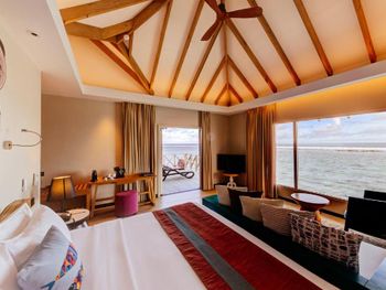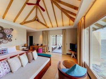 Замечательный отель) с самого приезда Мира- сотрудница отеля окутала нас заботой, быстро оформила, доставила до нашей виллы и помогала нам во всем) Мы жили на вилле на воде и это было прекрасно! Очень просторная, уютная, красивая, комфортная, с прекрасным видом на океан как с террасы, так и в окно в полу, где мы проводили вечера наблюдая за рыбами, скатами и акулами) Сам остров небольшой, но очень уютный, есть водные два бассейна несколько баров, живая музыка, водные виды спорта, экскурсии, дружелюбный персонал, питание разнообразное и вкусное. Всем рекомендую этот отель