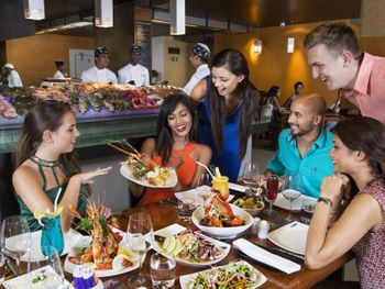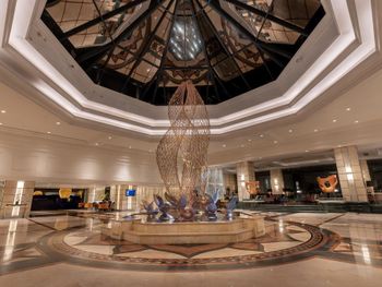 Безупречное обслуживание, потрясающий интерьер в классическом стиле, великолепная еда. Выбор огромный: устрицы, лобстер, краб, очень красивая, авторская подача. Каждый десерт как произведение искусства. Все было очень вкусно! Чистота, отель огромнейший, напротяжении всего отдыха чувствовали себя очень комфортно