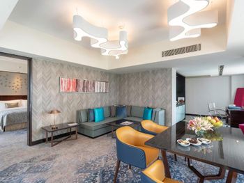 Большой сетевой отель в самом центре. Много баров, ресторанов, уютных лаунжей и террас (всё закрыто в период пандемии), хорош для крупных праздников, конференций. Отличный основной ресторан, "вкусный", с отличным сервисом. Зона возле бассейна, как удалось увидеть сквозь закрытые двери – чистая, ухоженная, зелёная. Думаю, в обычное время здесь можно проводить вечера даже не выходя в город.