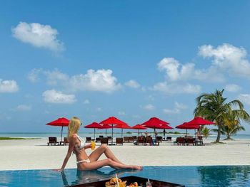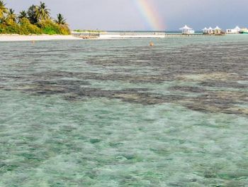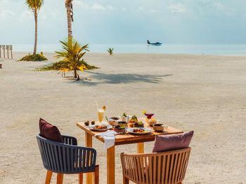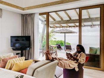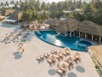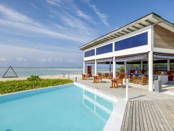 Океан и пляж.Как такового мальдивского песка там нет.У вилл песок весь раздут ветрами и ходишь ты по кораллам,которые больно колят ногу.Заход в воду тоже усыпан кораллами,глубины нет практически нигде.Вода по колено,максимум по бедро.Плавали на соседний необитаемый остров,там куча мусора,но есть глубина и одно место,где беленький песочек и можно погулять.Рифа своего нет,но плавают скаты и акулята.Рыбок красивых мало.Отель два раза в день возит на снорклинг в 5 минутах от отеля.Там поживописнее,но риф все равно не египетский.Был др у мужа,принесли торт за ужином.Ожидала хотя бы бутылочку вина в номер)Хотели на пару дней взять водную виллу,но отель был забит,так что оценить всех прелестей проживания на воде не могу.Добирались до отеля на катере 2.5 часа.Тяжеловато,многих укачивало.Так что берите таблетки или гидросамолет.В целом,отдохнули прекрасно,полный релакс.Цена-качество соответствует.