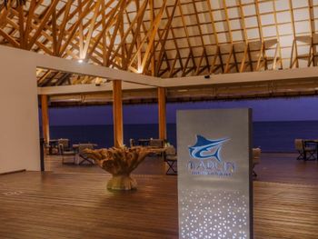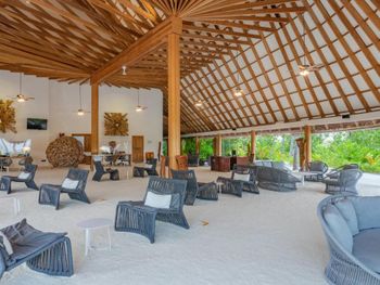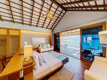 По прибытии нет ощущения, что тебя ждали. Только на месте выяснилось, что самолет до аэропорта нужно бронировать за 72 часа, а их у меня не было. Хоть я и писала в отель заранее, могу ли определиться на месте с трансфером. Для отеля 5* выбор блюд однообразный и откровенно невкусно. Почти нет морепродуктов, горячая станция не вызывает аппетита. Прокат оборудования для снорклинга- одно большое разочарование. Если у вас размер ноги 33-39, то ласт на вас попросту нет, и Вам предлагают..надеть какой-нибудь носок, чтобы ласты не слетали: «У нас все так делают». Были по системе «все включено», снеков в мини-баре нет, из алкоголя-только 2 баночки пива в день. Выбор коктейлей в баре присутствует, но их качество оставляет желать лучшего. ПОЛНОЕ ОТСУТСТВИЕ ПРИВАТНОСТИ. Как всегда бронировали виллу на воде для уединения. Однако, архитектура отеля такова, что ты видишь и слышишь абсолютно все, что творится на соседних 25ти виллах. Создается такое ощущение, что ты не один на своей террасе, т.к боковое ограждение только с одной стороны и очень маленькое🤷🏻‍♀️ Риф находится далеко от вилл (мы жили на 5-й от берега), он живой, однако, очень неудобный т.к очень мелко. От кораллов до поверхности воды около 30 см во время прилива. Во время отлива кораллы просто торчат из воды. В ресторане фиксированная рассадка с номерами вилл на столах🤦🏻‍♀️🤦🏻‍♀️ и даже если сильно светит солнце во время обеда или над Вашим столиком нет вентилятора и душно-то вы не можете выбрать удобное место и вынуждены сидеть там, где Вас посадили🤷🏻‍♀️