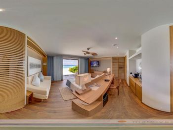 Начну по порядку. У нас был включен трансфер из Аэропорта в отель. Сбор всех, кому так повезло получить бесплатный трансфер был не спешным и после долгого 9-ти часового перелета это было тяжело: ожидали на улице в духоте. Лодка (Speedboat) оказалась не особо комфортабельной. К этому нужно быть готовым. Море было не спокойное и управление было очень резким: лодку подкидывало очень сильно на волнах. Одним словом, ЭКСТРИМ. В пути мы были примерно полтора часа. Встретили нас на пирсе спокойно и проводили на reception. С нами по умолчанию начали разговаривать на английском языке не узнавая, понимаем мы или нет. Для сервиса отеля 5* это не очень. Но к нам пришла на помощь сотрудница Сая и всё рассказала на русском языке, за что ей отдельная благодарность! Разметили нас быстро. Номер Улучшенный пляжный лофт выше всяких похвал. Просторно. Чисто. Вид из окна бесподобный! Большой плюс, что загорать можно на балконе и спать с открытым окном. На первом этаже не так комфортно из-за того, что вход в номер через балконную дверь и весь песок с пляжа попадает в номер. Ну и при открытой двери балкона вся ваша комната на всеобщее обозрение для проходящих. Еда хорошая, качественная, разнообразная, голодными не останетесь. Свежие соки из разных фруктов на завтрак в больших пиалах. Удобно, что за каждым номером закрепляют свой стол и не надо ждать и искать свободный. Хотя могут поменять стол через 1-2 дня, дают ближе к окну. Убираются не на 5+, но хорошо. Море бесподобное. Песочек белый, мелкий. Разнообразие рыбок и кораллов поражает. Обязательно берите с собой коралловые тапочки. Маски тут тоже необходимы, иначе не увидите всей красоты. Удобно, что места для снорклинга находятся со стороны вилл, а для комфортного плавания море у бара с бассейном. Уединение и расслабление полное.