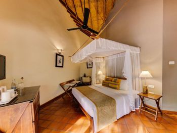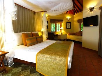 Новый современный отель, находящийся в сафари-парке. Номера в отдельных домиках-шале. В номерах идеальная чистота. Видели шесть крокодилов одновременно в двух метрах от себя, буйволов, кабанчиков, бурундуков. На сафари не ездили, большинство животных можно увидеть в отеле. Брали отель на завтраках - крутая шведская линия. Можно докупить обед и ужин (4500 рупий обед, 5000 ужин). Обед и ужин - шведская линия с огромнейшим выбором национальных и европейских блюд.