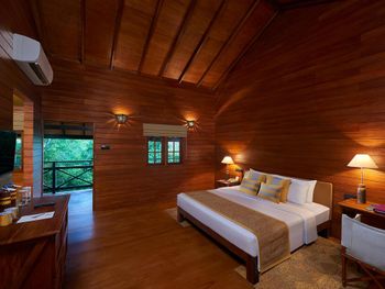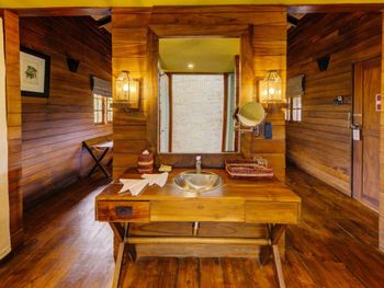 Чудесное расположение - посреди заповедника! Очень хороший ужин и завтрак: большой выбор блюд, красивая подача, вкусные коктейли, хорошее вино, быстрое обслуживание. Приятный бассейн, номер чистый, стильный, есть все необходимое, хорошая кровать. Дикие животные приходят прямо на территорию: павлин, белки-бурундуки, вараны, крокодилы в озере и на его берегах. Из птиц: цапли, пеликаны, бакланы и мелкие разные. Про слонов только рассказывают. Дмких буйволов видели в озере и на поле. Леопарда и медведя - только на сафари.