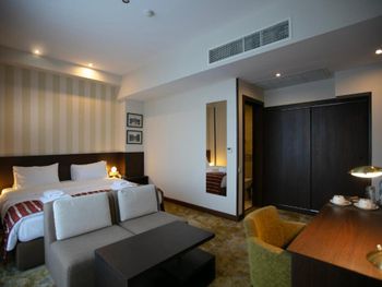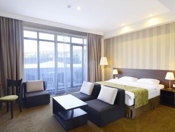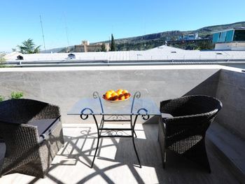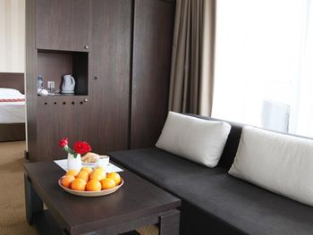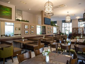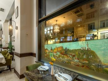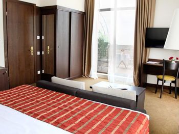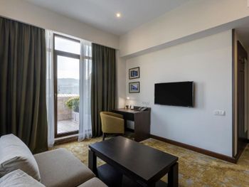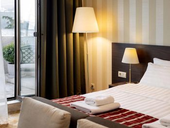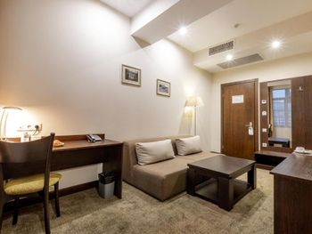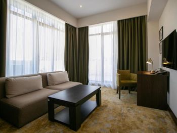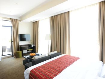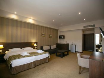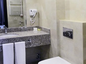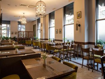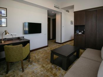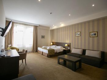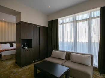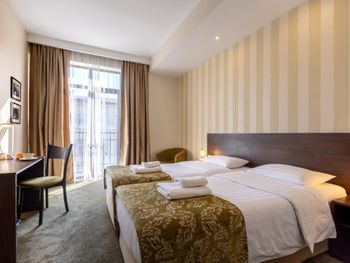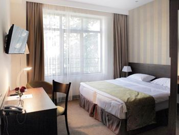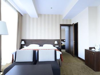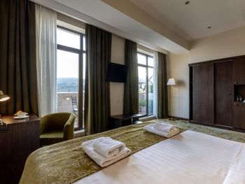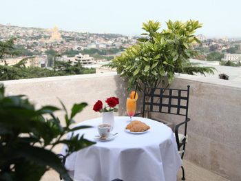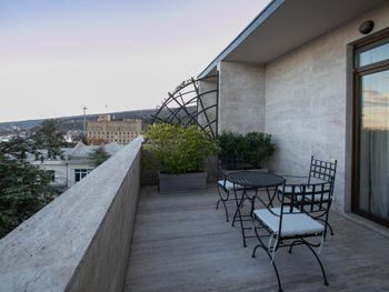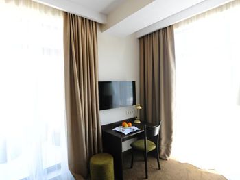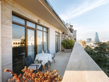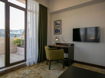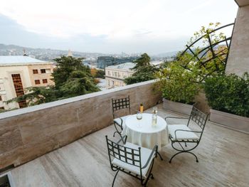 Вкусные "не надоедливые" завтраки. Тишина в номере даже с открытым балконом (жили на 8 этаже). И не смотря на соседство с Парламентом - тишина и спокойствие. Терраса с видом на горы - приятно посидеть вечерком. До метро "Площадь Свободы" 500 метров "по кривой". Ежедневная уборка номера с пополнением туалетных принадлежностей. За углом два продуктовых - один из них круглосуточный (приехали в 2 часа ночи, забежали за перекусом).