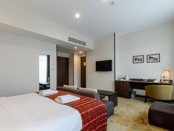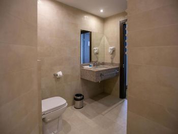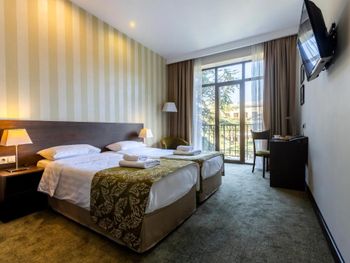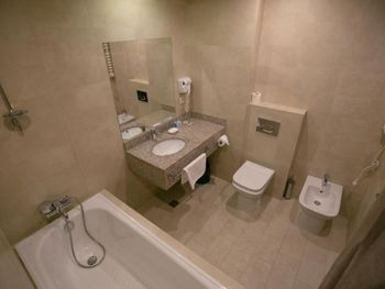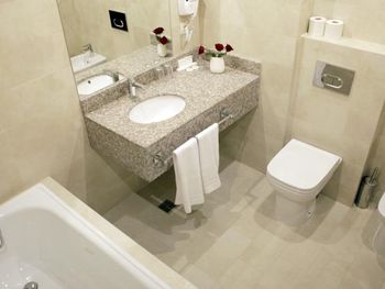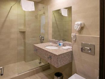 К 14-00 номер не готов. Ждали 45 мин. Кровати оказались не раздельными. Ванная комната очень мала.