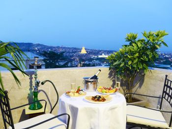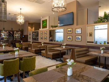Ежедневно в ресторане отеля подают блюда европейской и грузинской кухни, а также накрывают завтрак «шведский стол». В баре Beluga можно заказать коктейли и разнообразные алкогольные и безалкогольные напитки. Осуществляется доставка еды и напитков в номер. По запросу гостям предоставляются упакованные ланчи.