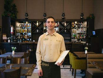Очень хорошее расположение отеля ,есть ресторан на первом этаже ,небольшие комфортные номера ,сотрудники ресепшен не очень дружелюбны