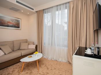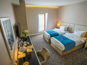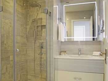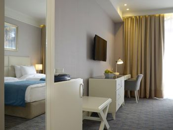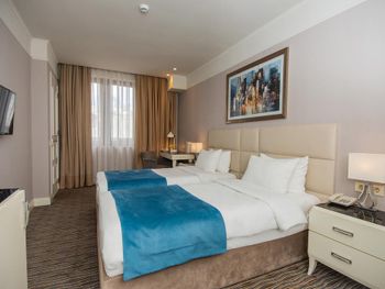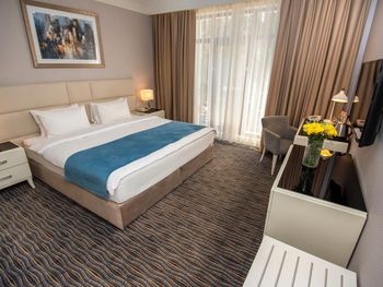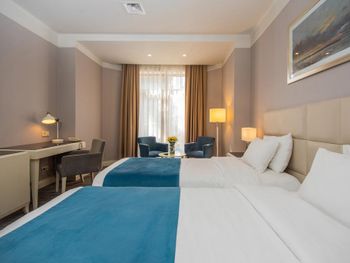 В номере было очень холодно. Обогрев осуществляется с помощью климат-системы, которая работает очень громко. Ночью выспаться не удалось. Очень маленькие номера.
