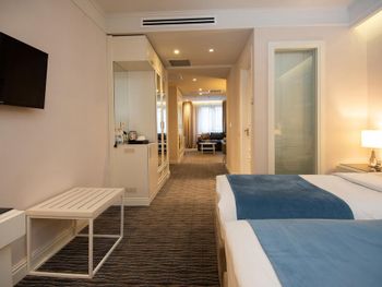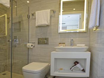 В числе удобств каждого номера — телевизор с плоским экраном и спутниковыми каналами, кондиционер и электрический чайник. В собственной ванной комнате с душем и биде имеются халаты, тапочки, бесплатные туалетно-косметические принадлежности и фен.
