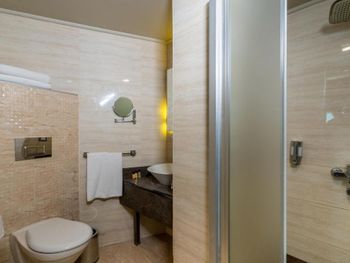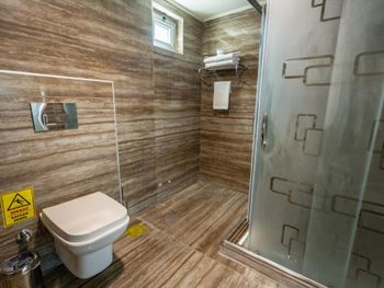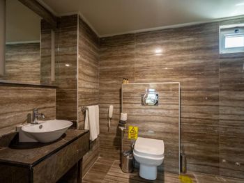 В душевой черная плесень. Дверь стеклянная еле держалась. Кондиционер мог включить только техник. Завтрак просто ужас. 6 видов оливок и сыр. Даже омлет за дополнительную плату.