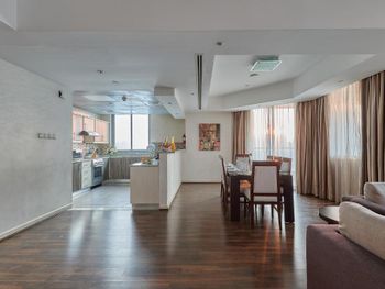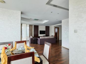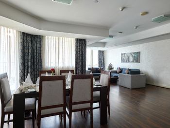Огромные апартаменты со всем необходимым. Большая площадь, наличие трёх санузлов, огромный балкон. Приятный дизайн интерьера.