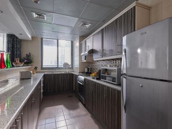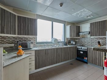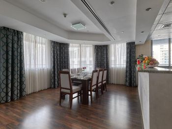 Ужасно грязный номер с плесенью, запыленными шторами, вонючими диванами затасканными до ужасного состояния. На кухне было опасно прикасаться к чему то. С потолка в ванной капала вода. Ну и самое отвратительное и не исправляемое это вид с окна через запыленное окно. То есть практически ничего не видно ну или неохота через такое окно смотреть. Постоянный шум от Шейх Заед Роад (трасса на 16 полос с огромным трафиком) Фотографии на Букинге не передают того что в номере очень темно как в подвале. Завтраки однообразные и переплачивать за них нет смысла. Острая и жаренная пища в сухую. По такой цене вполне можно жить в достойной и чистой гостинице. При заезде с вас возьмут еще какой то сбор хотя на Букинге указано что все налоги и сборы включены. Общие впечатления такие: мрачный, грязный, вонючий отель с фальшивыми улыбками персонала типа ты им мало денег дал. Посещали Дубай не первый раз и с таким столкнулись впервые.