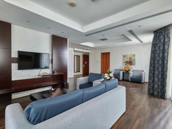 Довольно старый ремонт видимо со времен основания Дубая , цена не соответствует номеру. Брали стандарт. Оказалось 1 кровать, диван в гостиной не раскладывается .Унитаз сломан. Вид на стройку.Ванна в ужасном состоянии, вздутая. Балконы грязные. Стиральная машина скачет как конь.За доп кровать взяли 150 aed/ночь