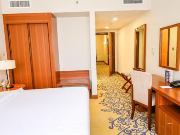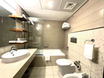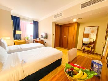 Остановились в этом отеле на сутки, все очень понравилось, нас было четверо, нам дали просторный номер из двух комнат с двумя ванными комнатами, все чисто, аккуратно, хорошее место расположение, персонал вежливый, было проблема зарядить телефоны не такие там розетки в номерах, попросили на ресепшене зарядить нам зарядили все четыре телефона, дополнительно воду принесли, также в номер принесли комплемент фруктовую корзину небольшую, было очень приятно. Хороший отель, рекомендую